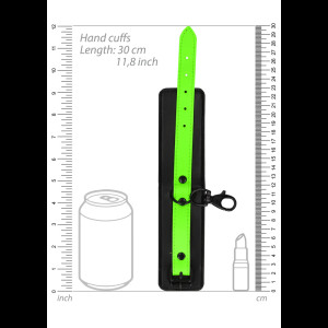 Λάμψη στο σκοτάδι, το μέλλον της δουλείας είναι εδώ. Σχεδιασμένο με αυθεντική αισθητική δουλείας, αλλά με την προστιθέμενη απόλαυση των ιδιοτήτων λάμψης στο σκοτάδι, η φθορίζον πράσινη λεπτομέρεια θα μετατρέψει κάθε εκδήλωση σε ένα μέρος. Με Τον Ouch! Λάμψη στο σκοτάδι, η διασκέδαση αρχίζει μόλις όταν τα φώτα σβήνουν. Αυτές οι μανσέτες χεριών και αστραγάλου με το hoggtie εκπληρώνουν όλα τα ζαλισμένα όνειρά σας! Οι συνοδευτικές μανσέτες του καρπού και του αστραγάλου φροντίζουν να μην πρόκειται να πάτε πουθενά.Τα προϊόντα Glow-In-The-Dark πρέπει να ενεργοποιούνται με το φως του ήλιου πριν το απολαύσουν στο σκοτάδι.