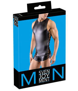 Ανακαλύψτε το Slim Fit Black Vinyl T-Shirt από το Svenjoyment, μια κομψή προσθήκη στη σέξι συλλογή ρούχων σας. Αυτό το αμάνικο μπλουζάκι είναι κατασκευασμένο από ένα ελαφρύ ύφασμα τεντώματος με μοντέρνο ματ φινίρισμα. Η μεταβλητή που δένει σε κάθε πλευρά προσθέτει μια μοναδική πινελιά και εξασφαλίζει μια τέλεια εφαρμογή για τη φιγούρα σας. Χάρη στους ιμάντες του, αυτό το t-shirt προσφέρει μια άνετη εφαρμογή και αφήνει το δέρμα να αναπνεύσει, ιδανικό για ειδικές βραδιές ή προσωπικές στιγμές.