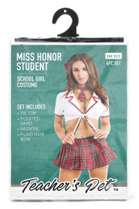 Το Teacher's Pet σας καλύπτει με ολοκαίνουργια σετ κοστουμιών, ιδανικά για το Halloween ή το επόμενο πάρτι κοστουμιών σας. Γράψτε το όνομα της αγαπημένης σας σε όλο το σημειωματάριό σας και φροντίστε να της κλείσετε το μάτι με αυτό το σετ μαθητών τεσσάρων τεμαχίων.